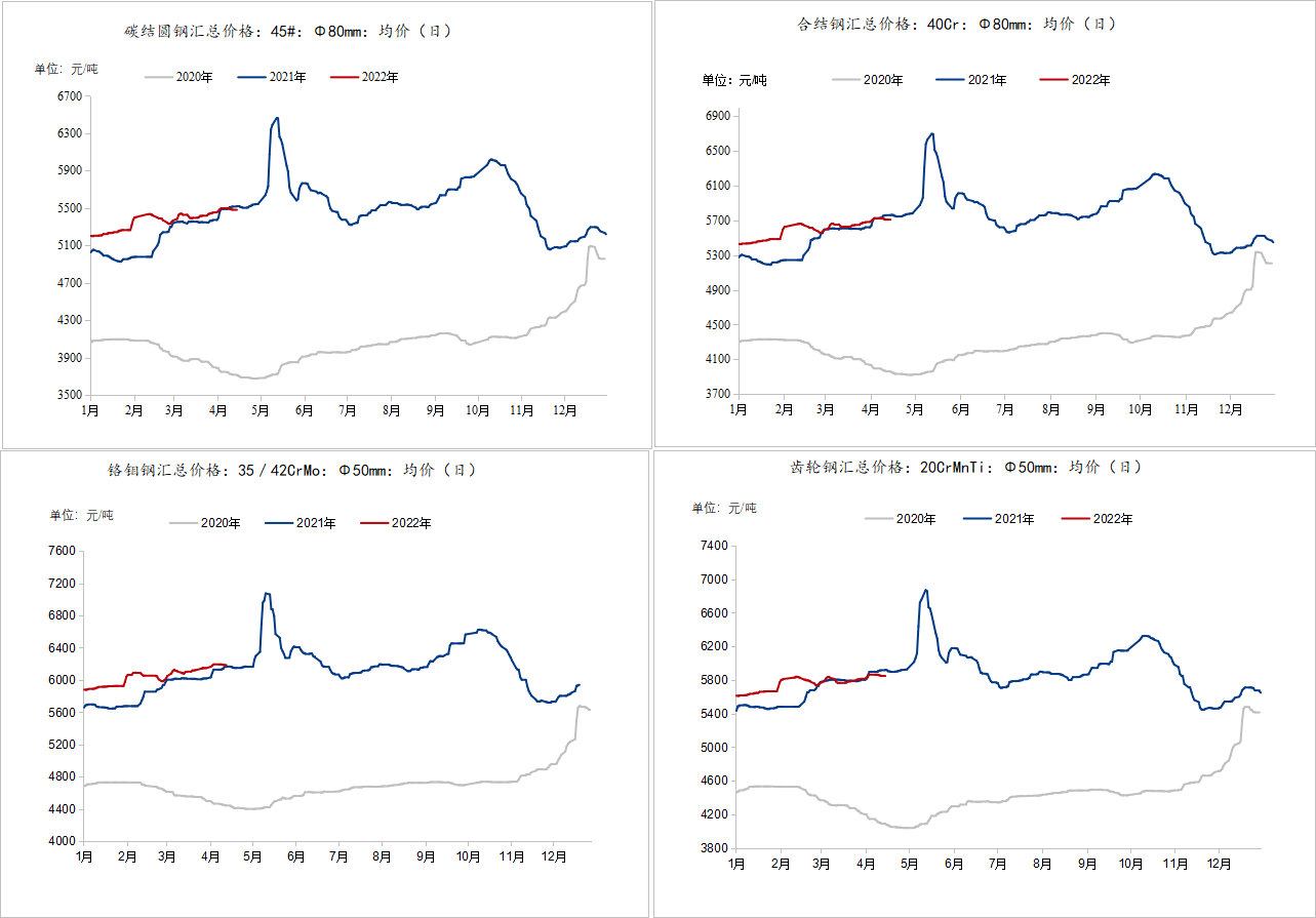 山東市場:山東市場優(yōu)特鋼市場價(jià)格漲跌互現(xiàn)。其中45#魯麗5360元/噸,富倫5320元/噸,廣富中棒5390元/噸大棒5470元/噸,西王大棒5450元/噸,濰鋼5450元/噸,巨能5520元/噸,40Cr巨能5720元/噸,濰鋼5650元/噸。萊鋼特鋼45#5580元/噸,20CrMnTi5910元/噸。本周山東市場受疫情影響,運(yùn)輸仍然不暢,但較上周有所好轉(zhuǎn),在此大背景下鋼廠庫存和社會(huì)庫存均出現(xiàn)了小幅上升。魯麗和富倫售價(jià)出現(xiàn)較了下跌,主要是前期上漲過快后價(jià)格回歸。濰坊特鋼、巨能特鋼和萊鋼特鋼價(jià)格上漲為主,主要是受鋼廠拉漲,代理商被迫上漲為主。預(yù)計(jì)下周運(yùn)輸困難情況將逐漸緩和,市場價(jià)格穩(wěn)定為主。