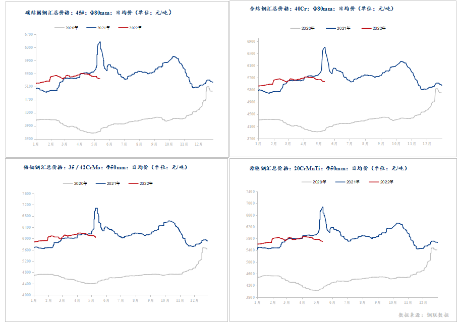 東北市場(chǎng):本周東北優(yōu)特鋼市場(chǎng)價(jià)格小幅回落。目前沈陽市場(chǎng)價(jià)格45#本鋼5270元/噸(國標(biāo)),凌鋼5390元/噸,通鋼5390元/噸,建龍北滿5390元/噸,較上周下跌40元/噸。市場(chǎng)方面,本周市場(chǎng)價(jià)格受期貨價(jià)格震蕩影響小幅下降,并且受疫情影響,終端需求偏弱,成交慘淡,主流鋼廠頻頻下調(diào)指導(dǎo)價(jià),鋼價(jià)支撐力度減弱。目前交通運(yùn)輸不暢仍然存在,部分市場(chǎng)受疫情影響發(fā)運(yùn),鋼廠庫存和社會(huì)庫存有所降低,但仍處于高位。市場(chǎng)情緒較悲觀,資源報(bào)價(jià)小幅走低。綜合來看,預(yù)計(jì)下周東北優(yōu)特鋼市場(chǎng)價(jià)格震蕩趨弱運(yùn)行為主。