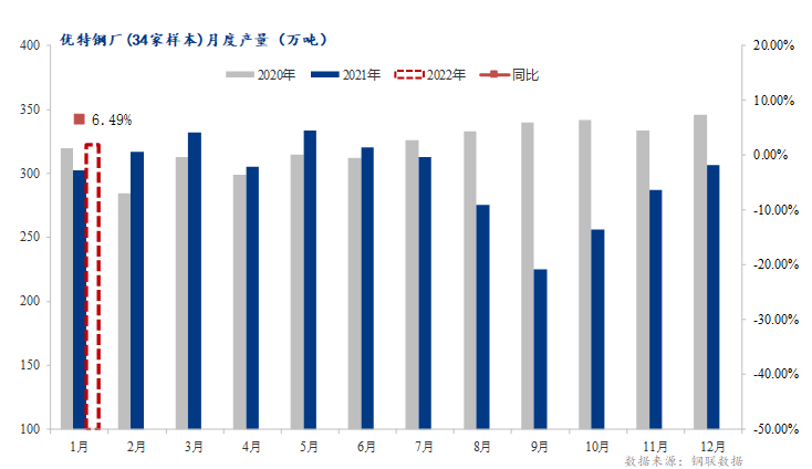 1月優(yōu)特鋼排產(chǎn)322萬噸 環(huán)比增15萬噸