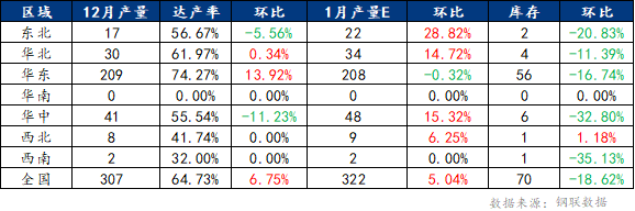 二、分區(qū)域看12月生產(chǎn)、庫(kù)存情況