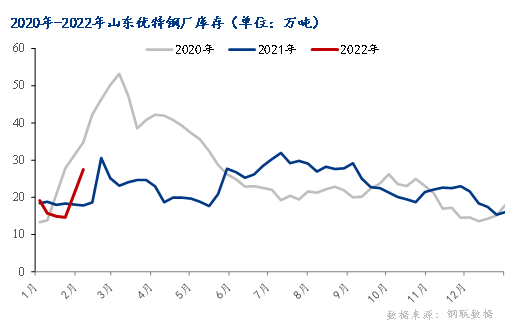 山東優(yōu)特鋼廠庫存27.49萬噸,較節(jié)前增加12.86萬噸