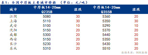 今日國內(nèi)主流中厚板廠一單一議價格漲勢明顯,其中華北地區(qū)多調(diào)整20-50元/噸,華東地區(qū)多調(diào)整20元/噸。