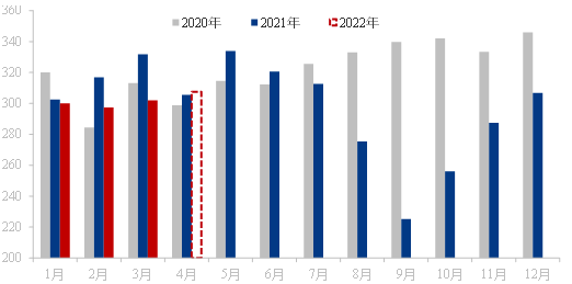 表二:2020-2022年優(yōu)特鋼棒材(34家樣本)產(chǎn)量(單位:萬(wàn)噸)