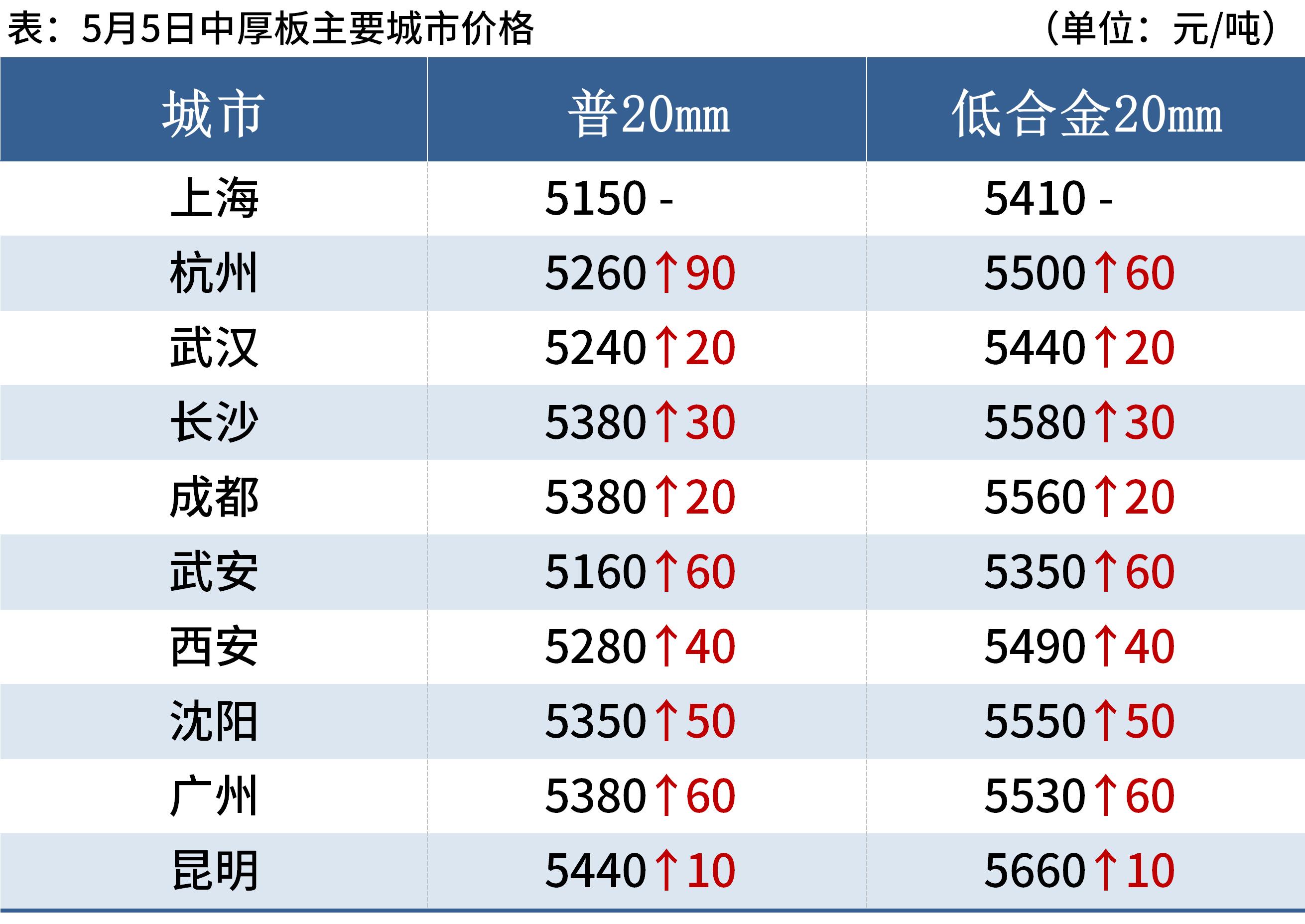 中厚板:5月5日,全國24個主要城市20mm普板均價5318元/噸,較上一交易日上漲36元/噸。據(jù)Mysteel數(shù)據(jù)顯示,本周中板產(chǎn)量增1.23萬噸,廠庫增4.7萬噸,社庫增4.84萬噸,增幅均較多,后續(xù)銷售壓力增強(qiáng);雖華東華北疫情管控逐漸放寬,但需求仍整體處于淡季,上漲動力有限,同時原料價格高位運(yùn)行,下跌空間有限;綜合預(yù)計,6日國內(nèi)中厚板市場漲幅收窄,近期震蕩運(yùn)行為主。