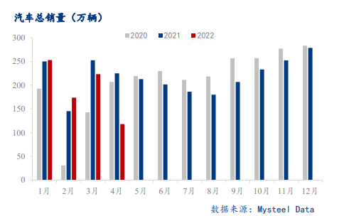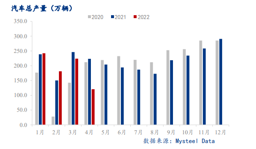 自4月以來,國內(nèi)疫情形式較為復(fù)雜,多地多企業(yè)不得不選擇停工抵對疫情。像上海,吉林等地本就是汽車行業(yè)生產(chǎn)供應(yīng)鏈中的重地,卻在疫情影響下,大量汽車零部件體齒輪鋼供應(yīng)商無法及時生產(chǎn)及供貨,導(dǎo)致全國各汽車廠商的生產(chǎn)受限,從而產(chǎn)量大幅下滑影響終端銷量。