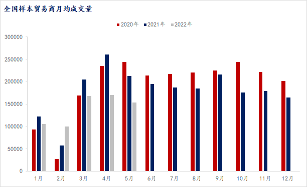 其次,今日全國主要城市的成交量為13.09萬噸,較昨日15.09萬噸下降了2萬噸,降幅13.3%左右,近3周單日的成交量低于20萬噸以下,說明當(dāng)前市場整體需求依舊偏弱。根據(jù)2020-2022年各月的日平均成交量,可以看出除了今年除了2月份好于去年及前年,其余月份基本大幅低于往年水平,尤其是3月份國內(nèi)各地區(qū)疫情蔓延之后,成交量更是出現(xiàn)了大幅度回落。一方面市場對于5月份消費(fèi)數(shù)據(jù)環(huán)比好轉(zhuǎn)的預(yù)期,但伴隨著連續(xù)的雨季來襲,疊加五月疫情的反復(fù)“糾纏”,強(qiáng)預(yù)期與弱現(xiàn)實(shí)反復(fù)博弈。在需求強(qiáng)預(yù)期踏空之后,造成了市場的消費(fèi)信息以及投資信息的下降,進(jìn)而讓市場再度陷入震蕩探底的局面。