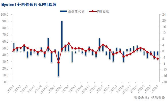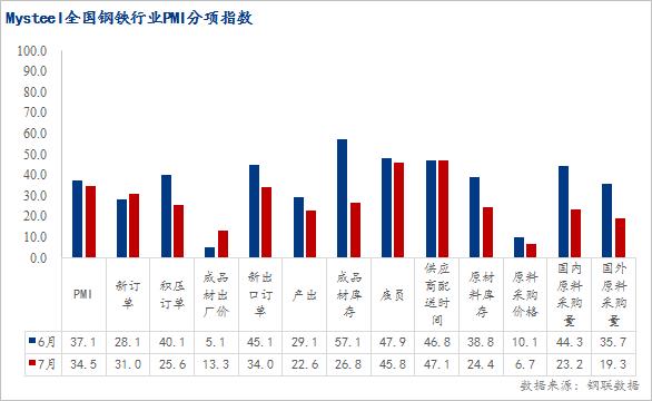 7月全國鋼鐵行業(yè)PMI小幅回落 終值34.5%