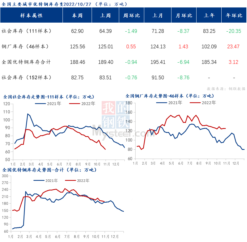 全國優(yōu)特鋼庫存統(tǒng)計