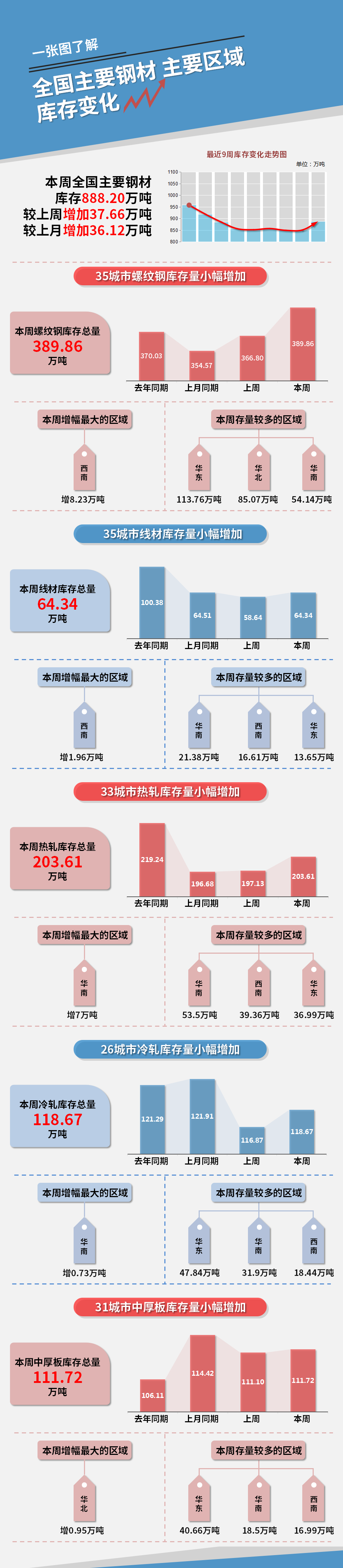 本周五大品種總庫存1325.44萬噸,較上一期增加42.89萬噸。供應(yīng)方面,本周除熱軋和冷軋,其余鋼材品種產(chǎn)量環(huán)比均出現(xiàn)下行,主因在于建材長短流程企業(yè)均進(jìn)入季節(jié)性停休或降低生產(chǎn)飽和度的狀態(tài)。需求方面,本周五大鋼材(軸承鋼)品種周消費(fèi)量環(huán)比延續(xù)下行,終端需求表現(xiàn)仍維持淡季特征。庫存方面,本期各端庫存環(huán)比延續(xù)上行,主因在于當(dāng)前終端冬儲推進(jìn)偏慢、下游散單采購情緒偏低、投機(jī)需求減弱等因素影響,預(yù)計(jì)后期庫存累增幅度將進(jìn)一步擴(kuò)張。