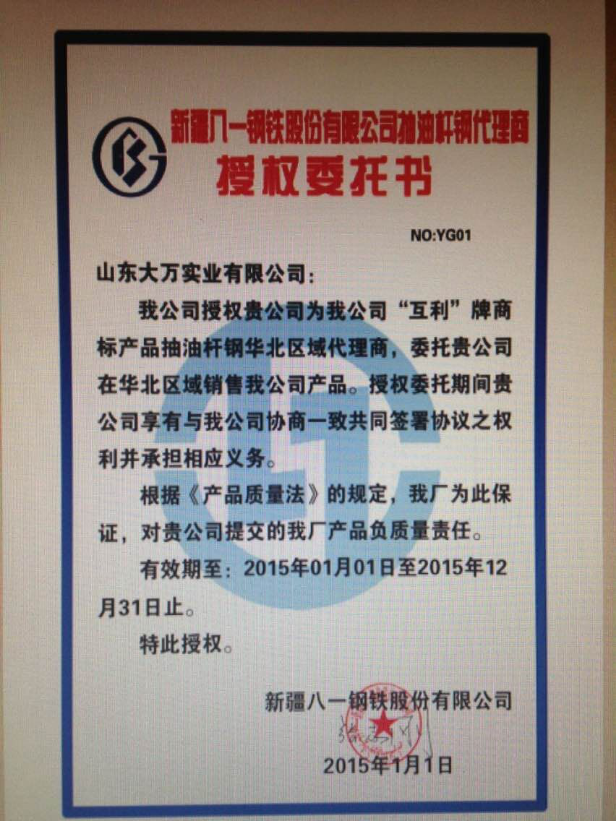 下一篇: 2020年新疆八一鋼鐵有限公司授權書 上一篇: 2015年西寧特殊鋼股份有限公司授權書
